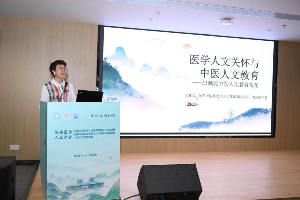 医学人文教育的成果交流和展示环节,由西安交通大学公共卫生学院党委副书记岳甜主持。陕西中医药大学人文管理学院院长欧阳静从AI赋能中医人文教育视角分享《医学人文教育与中医人文教育》报告,她结合丰富的研究与实践经验,探讨AI如何在中医人文教育中发挥更大作用,为中医教育的传承与创新提供新的思路。