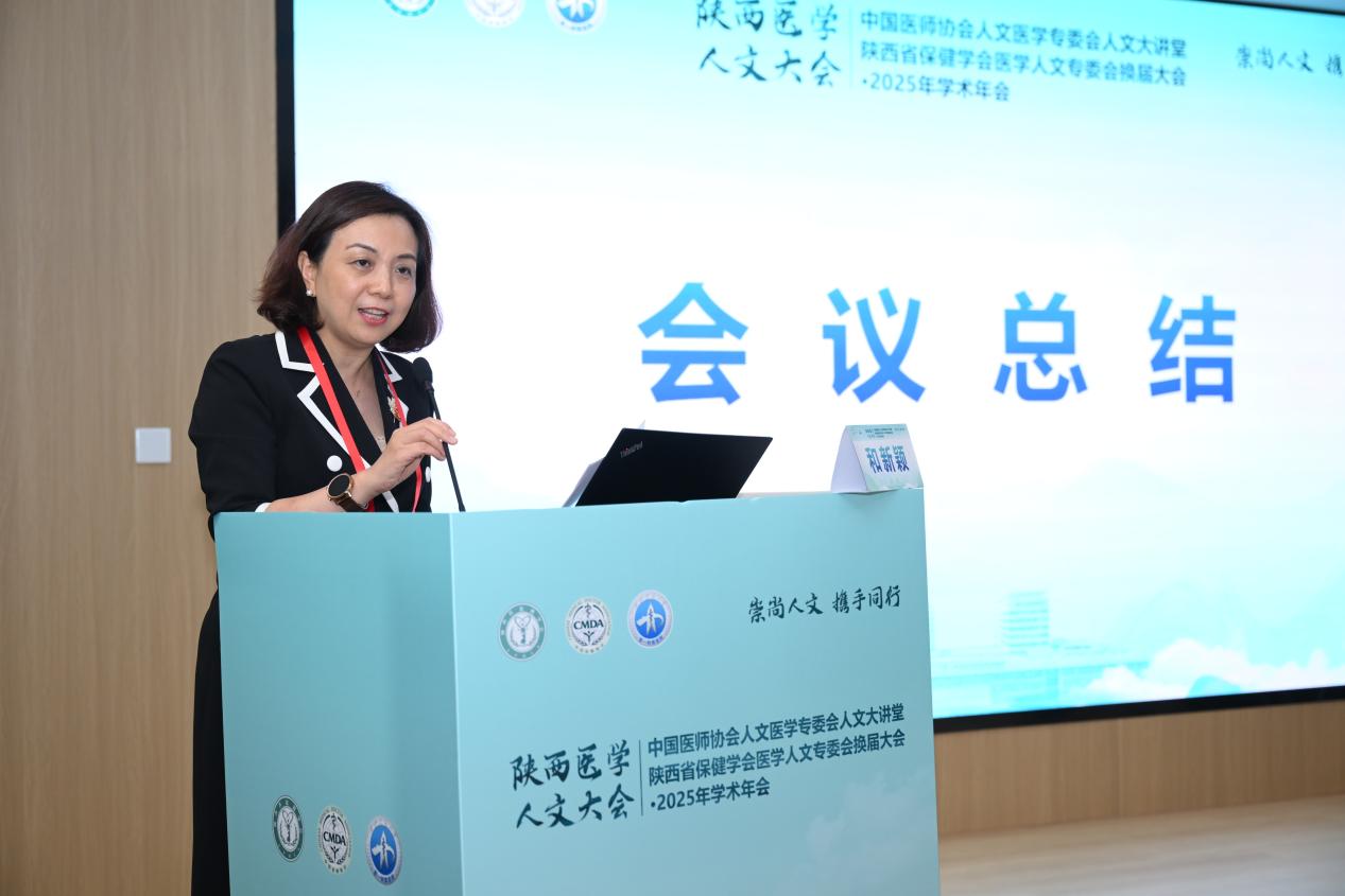 最后,西安交通大学中国医院发展改革研究院副院长、陕西省保健学会第二届医学人文专委会主委和新颖作会议总结。本次大会主题鲜明、内容丰富、组织严密。通过主旨报告、经验交流、实地参观、圆桌论坛、医学人文教育成果分享等多元形式,阐释了医学人文核心议题,为新时代医学人文建设提供了宝贵的理论指导和实践经验。各位专家、学者的精彩分享不仅凝聚了智慧的火花,更点燃了行动的激情。
