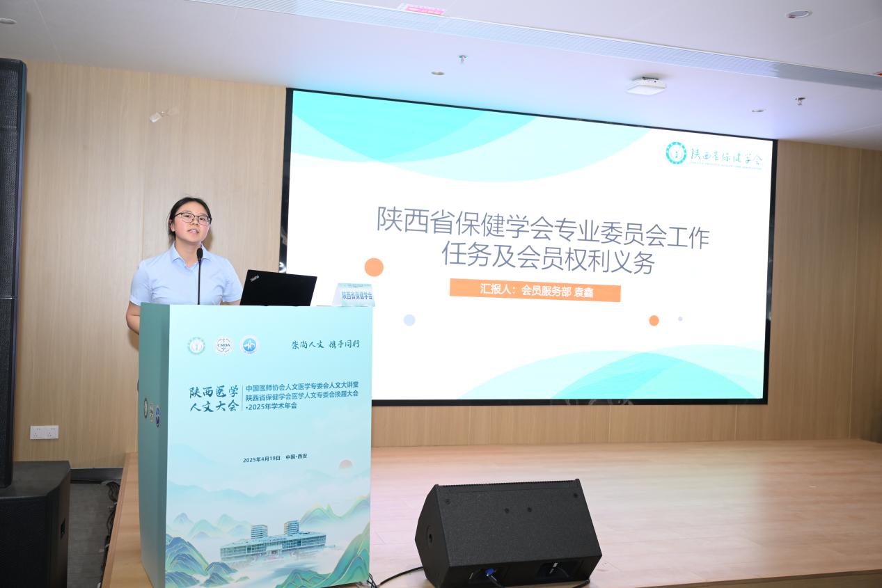 换届大会第五项,由和新颖主委作表态发言。和主委表示将继续团结广大医学人文同道,崇尚人文,携手同行!按照陕西省保健学会章程,持续规范做好专委会管理工作,为致力于践行人文精神、以医学人文助力医院高质量发展的同道们建设好交流、学习的平台,为陕西省医学人文事业发展贡献力量。随后,学会管理人员介绍专委会工作任务及会员权利义务。本次换届大会的顺利举行标志着陕西保健学会推动的医学人文事业迈入新阶段。